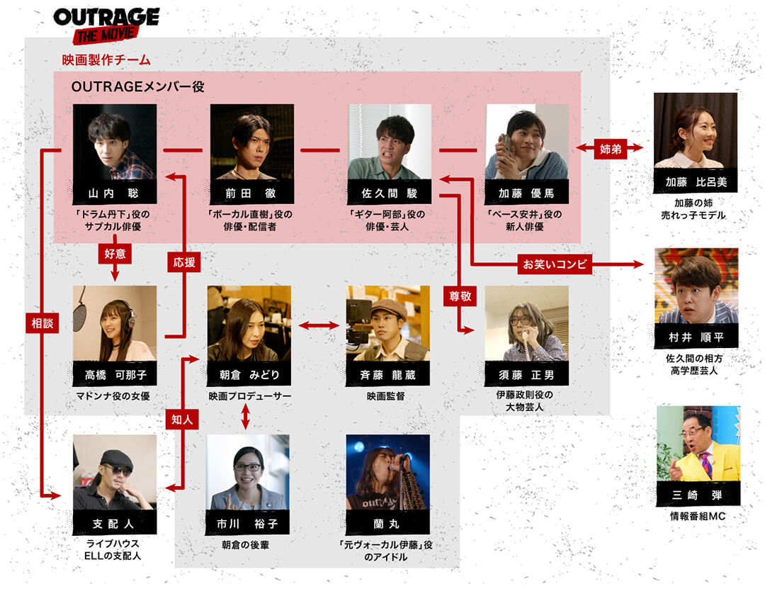 やがて“OUTRAGE”が経験してきた過酷な日々を演じる中で、 彼らは自身の立ち行かない本業や燻る気持ちが交錯し、いつしか真摯に己と向き合うように。